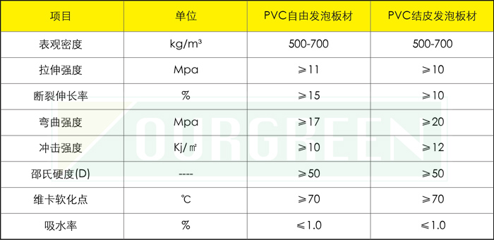 歐格PVC發泡板的表觀密度、拉伸強度、斷裂伸長率、彎曲強度、沖擊強度、邵氏硬度(D)、維卡軟化點、吸水率及燃燒性能的指標均符合標準。