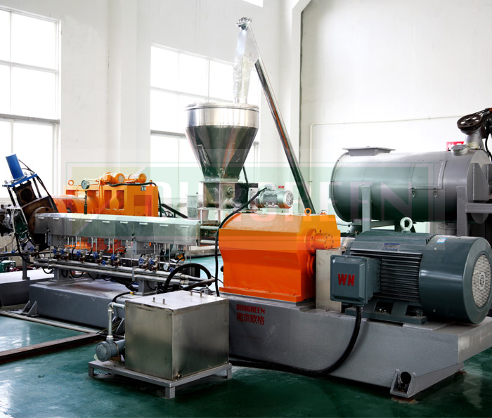 歐格設計制造的雙螺桿擠出機,它的作用是使得投入的原料能夠塑化和混合。特有的雙螺桿設計使得原料可以充分混合,有效的確保了終產品的結構和密度。