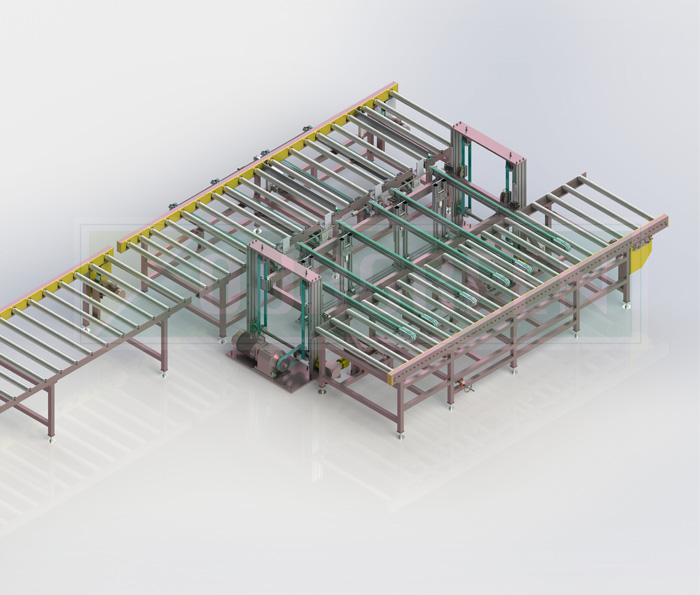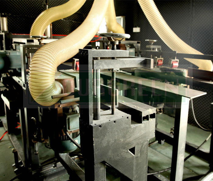 特有的冷卻輸送架末端采用彈性可調裝置,保證板材兩側被切割部分的準確度和相同性。